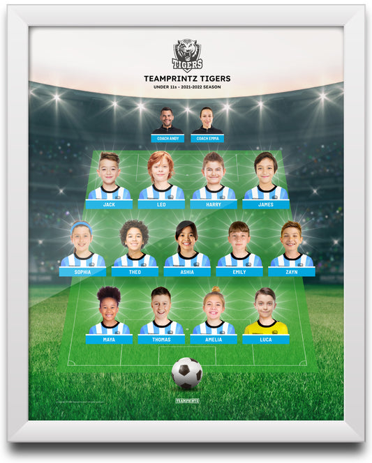 Teamprintz is a family business, which came about after looking for a gift for our boy's football team coaches. We wanted a framed print of the team with individual photos of each player and coach, but couldn't find what we wanted anywhere and ended up designing our own.